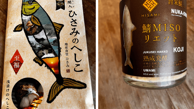 お店の下にはへしこ工房があって、お土産として購入もできるよ。もちろんのっぺもへしこと鯖のリエットを購入。
