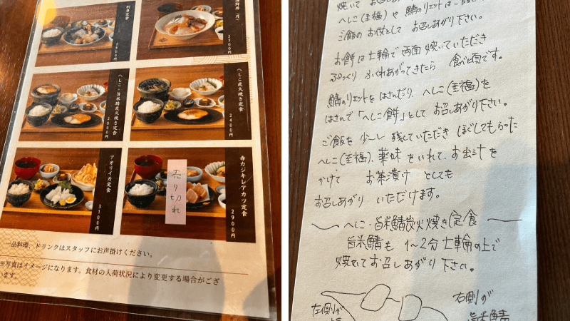 注文すると、まず店員さんが へしこの食べ方を丁寧に説明 してくれるので安心。