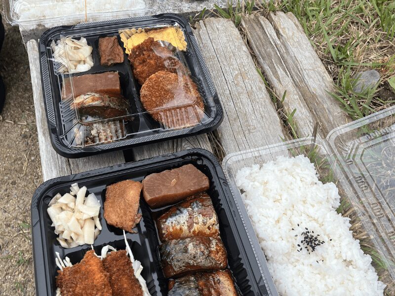 - おすすめ弁当(ライス、鯖煮、チキンカツ、コロッケ、卵焼き、箸一膳)900円